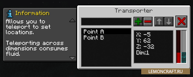 Мод Whoosh добавит в игру портативный телепорт (карманный). Данный мод является аддоном для мода Thermal Expansion. Карманный телепорт может работать в двух режимах: на короткие расстояния и на длинные расстояния. На короткие расстояния вы сможете телепортироваться даже через стены. Для телепортации на длинные расстояния используются координатные точки.